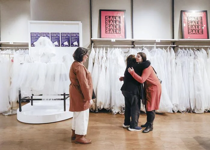 “Right now, price isn’t our biggest problem. It’s finding something that fits her vibe,” said Laura Trotter, who paid $700 for her wedding dress 30 years ago. “I mean, it would be great if we found a dress here, I’m not going to lie.”