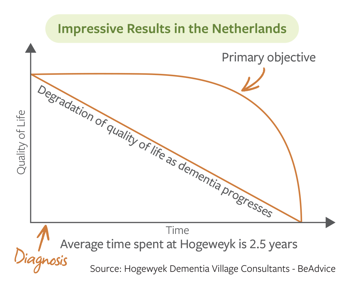 Village residents will live in small, intimate households supported by specially trained staff. Day Club members will spend their days alongside Village residents, with a strong emphasis on physical activity, social connection and time outdoors. As with Hogeweyk, Agrace’s Dementia Village is designed to support people in doing the kinds of everyday activities they would naturally enjoy if they were not living with dementia.