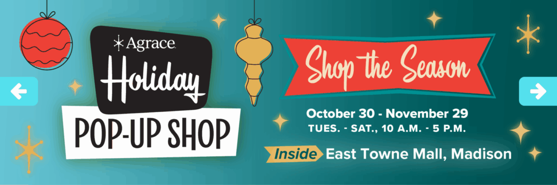 Share your love of thrifting with a friend or two by purchasing gift cards for the Agrace Thrift Store! Gift cards are available at all store locations at $10, $20, $50 or $100. Your gift card purchase not only supports the stores (and Agrace) but also lets you give a friend a unique gift.